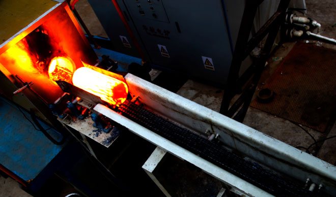該智能流水線將鍛壓和碾壓軋制工藝融為一體,從毛坯下料、上料、加熱、初鍛、碾壓成型到成品輸出,實(shí)現(xiàn)了自動(dòng)化流水作業(yè)。它是我公司《起重機(jī)車(chē)輪碾壓成型新工藝裝備》、《起重機(jī)車(chē)輪鍛壓用新型加熱工藝裝備》等多項(xiàng)專(zhuān)利技術(shù)成果轉(zhuǎn)化為生產(chǎn)力的標(biāo)志。