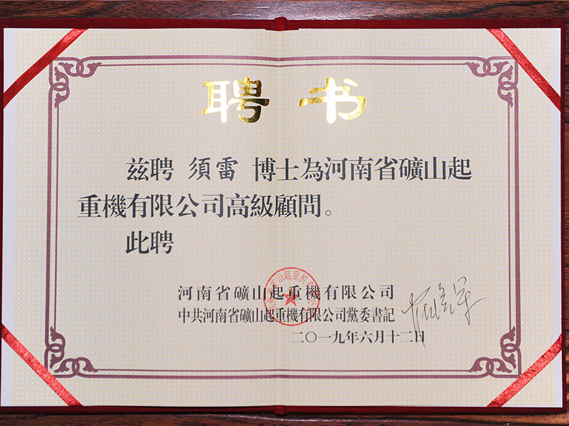 河南礦山聘任起重行業(yè)專家、工學(xué)博士須雷先生為公司高級(jí)顧問(wèn)!